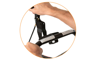 The control is carried out by means of a lever on the handle. The operator can quickly and efficiently change the travel speed, lower and raise the pins.