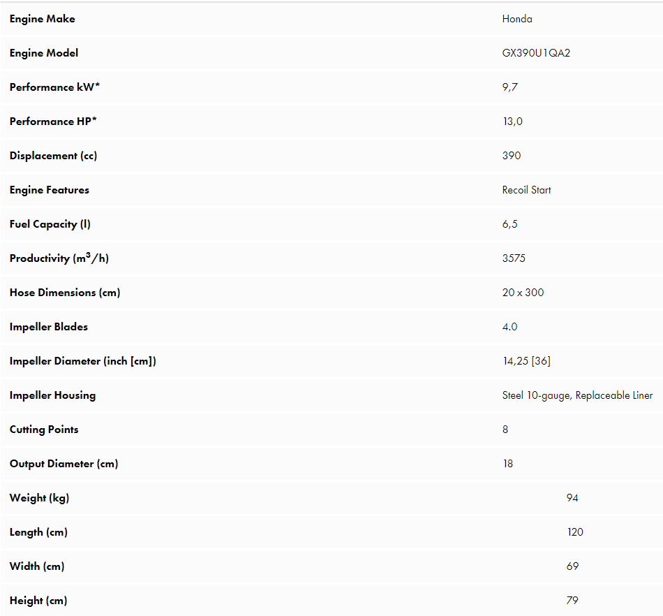 The perfect combination of power and size, at 3,573 m3 / h, the DL13 onboard squeegee is the perfect solution for professional cleaning of leaves and other debris from small areas. A 35 cm blade impeller with a Piranha ™ blade that shreds waste to reduce its volume by a factor of twelve! Polycarbonate suction hose, 300 cm long. Dual grinding system with Piranha ™ blade which allows to reduce impurities up to 12: 1. Discharge chute deflector kit. Tilts the top flap for the most efficient loading. Also available as an accessory.